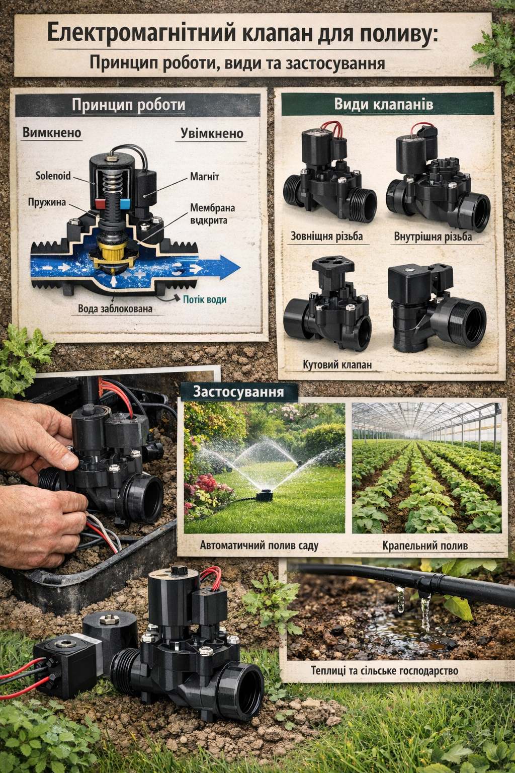Правильно підібраний клапан гарантує стабільну роботу системи поливу протягом багатьох сезонів. Електромагнітні клапани застосовуються практично в усіх сучасних системах поливу: