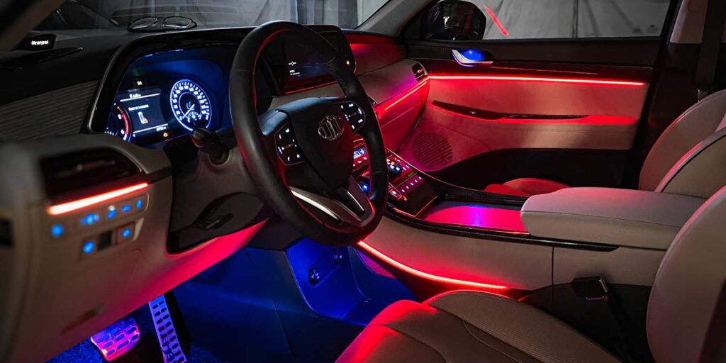 Особливу увагу варто приділити модельним комплектам, розробленим під конкретні марки та моделі автомобілів. Такі системи враховують архітектуру салону, розташування штатної електропроводки та особливості заводського освітлення. Модельні комплекти зазвичай інтегруються зі штатною мультимедійною системою автомобіля, що дозволяє керувати підсвіткою через екран бортового комп’ютера або навіть через мобільний додаток. Користувач може змінювати колір, яскравість, режими світіння (статичний, пульсуючий, реагуючий на музику), синхронізувати підсвітку з роботою двигуна або швидкістю руху.