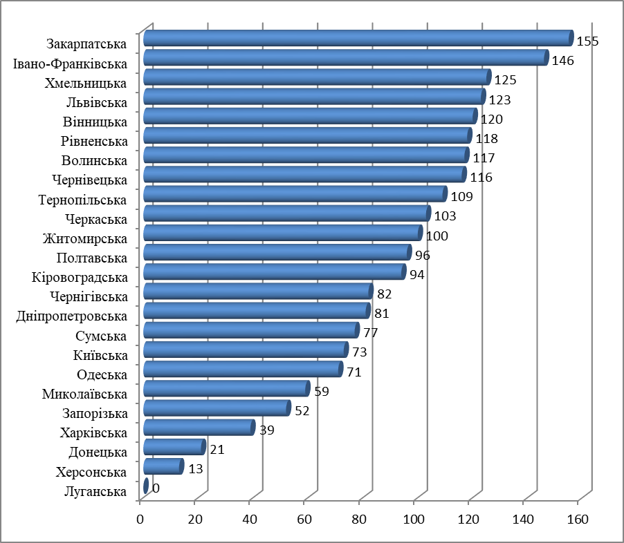 Порівняно з довоєнними показниками, найбільше зросла кількість вакансій у Закарпатській (155 %), Івано-Франківській (146 %), Хмельницькій (125 %), Львівській (123 %), Вінницькій (120 %), Рівненській (118 %) та Чернівецькій (116 %) областях. За абсолютною кількістю пропозицій роботи незмінними лідерами є: Київська (30 913 вакансій), Львівська (8 473), Дніпропетровська (8 452), Одеська (5 752) та Харківська (3 347) області. У зазначених областях зосереджено 63 % усіх вакансій.