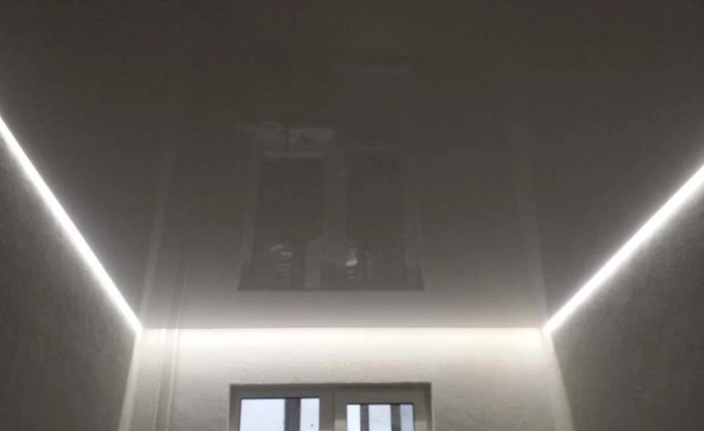 - Парящее полотно — эффект «плавающего» потолка с LED-подсветкой по периметру.