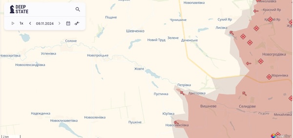 "Ворог просунувся в Кураховому, Григорівці, біля Максимільянівки, Побєди, Новоолексіївки та Богоявленки".