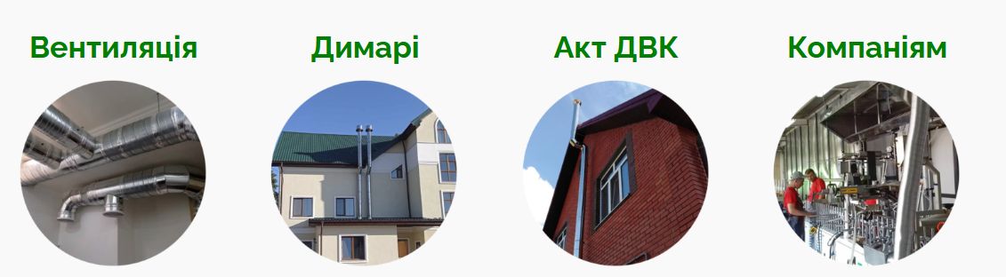 У межах своєї діяльності компанія охоплює весь спектр робіт, пов’язаний із димоходами, вентиляцією та кліматичним обладнанням. До цього входить очищення димарів, відновлення тяги, усунення зворотної тяги, ремонт внутрішніх каналів і зміцнення пошкоджених ділянок. Також проводиться очищення вентиляційних шахт, перевірка пропускної здатності, прочищення каналів і усунення засмічень, які накопичуються роками.